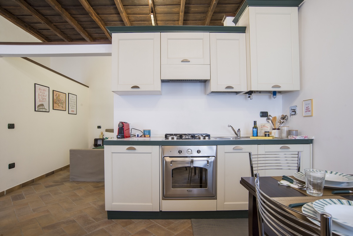 The Cacio e Pepe Apartments are located in the Monti district of Rome. They are on the second and last floor of a seventeenth century building. Both units have been recently renovated and feature a flat-screen TV and a fully equipped kitchen. Free Wi-Fi, smart TV, Alexa and. A Nespresso coffee machine are at the guests’ disposal. Each unit is provided with its own fire extinguisher, first-aid kit and monoxide detector.